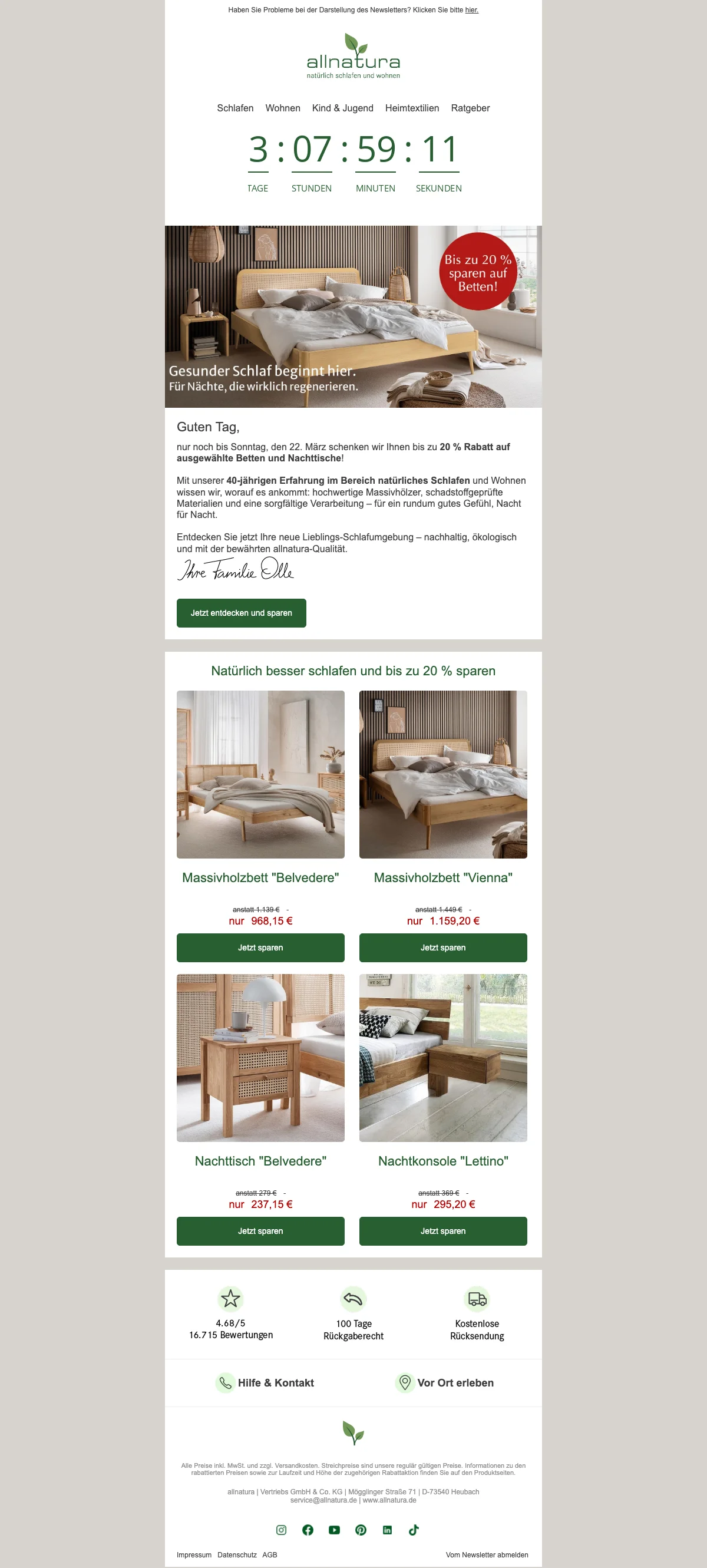 Allnatura bettenaktion massivholz betten bis 20% rabatt sichern