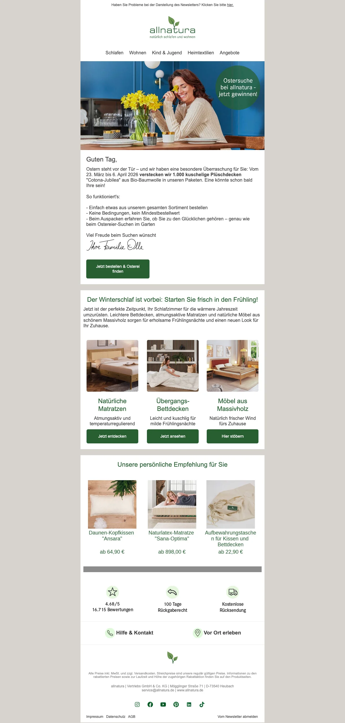 Allnatura Bettwaren zum Wohlfühlen! Schon ab € 42.90,-