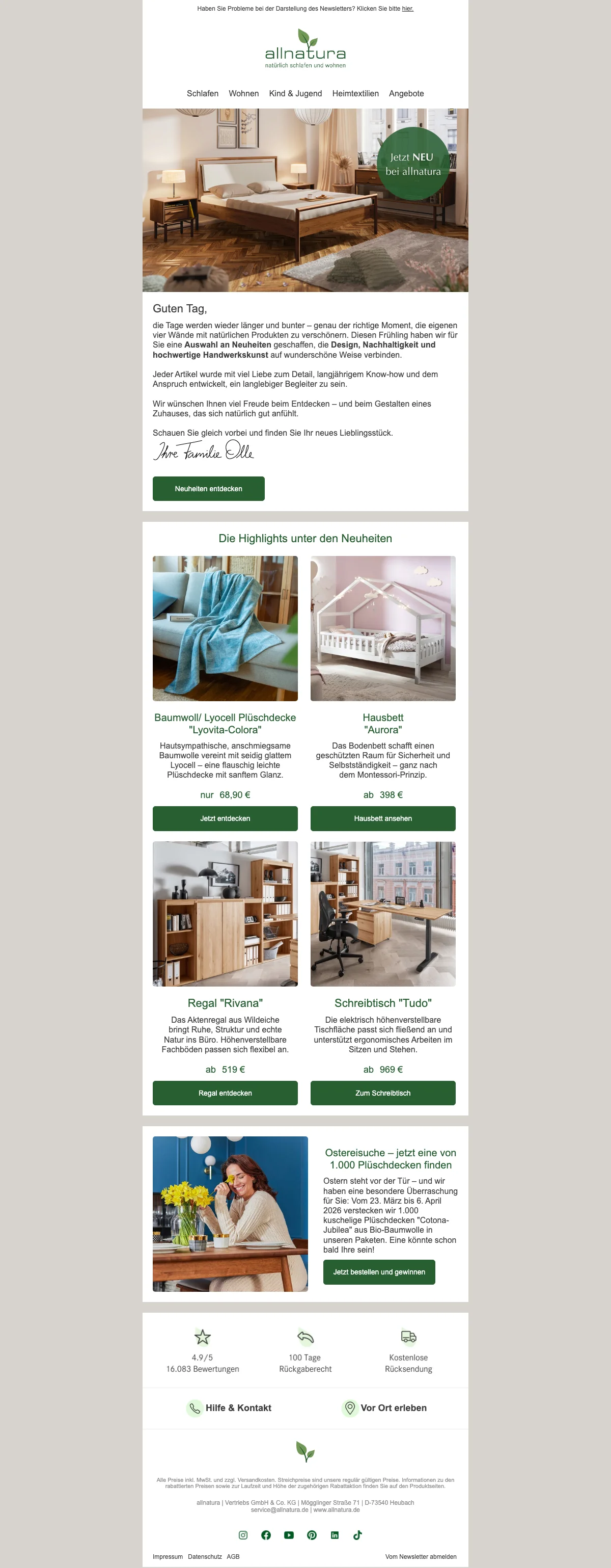 Allnatura Neuheiten Valentins-Rabatt 5 % auf Massivholz-Möbel