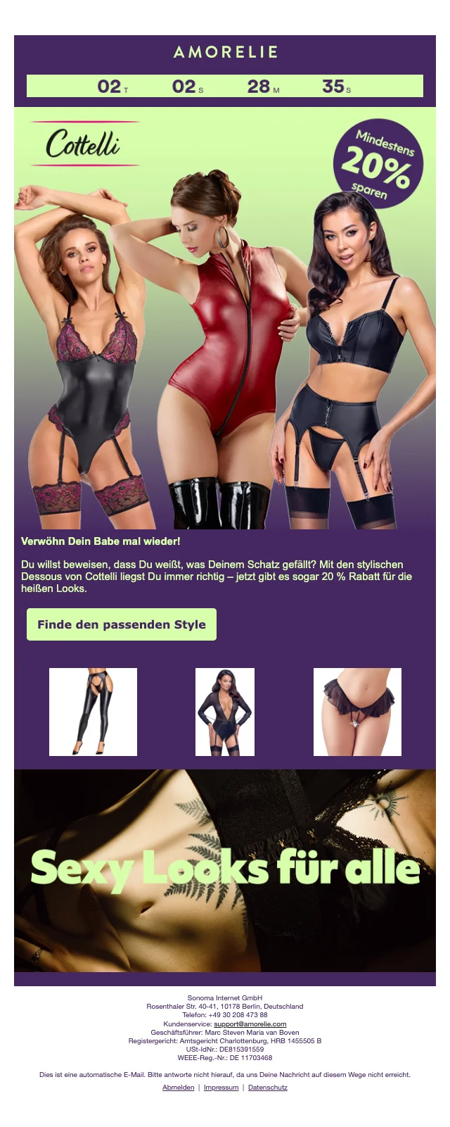 Amorelie Angebot: bis zu 20 % Rabatt auf das Damen-Sortiment