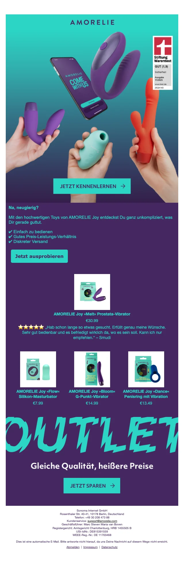 Amorelie it’s me! Möchtest du wieder aufregende Dinge mit deinem Partner oder deiner Partnerin erleben? Bei Amorelie bist du genau richtig. Frische dein Sexleben im Bett wieder auf, indem du Sextoys bestellst. Am Black Friday kannst du Sextoys bei Amorelie zum Schnäppchenpreis erhalten. Saleduck hält nur für dich alle Gutscheincodes bereit, damit du am Black Friday auf deine Kosten kommst.