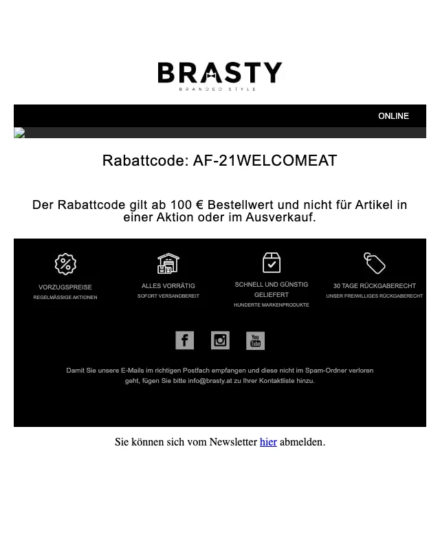 Brasty Österreich: Bis zu 10 % Rabatt auf viele Produkte