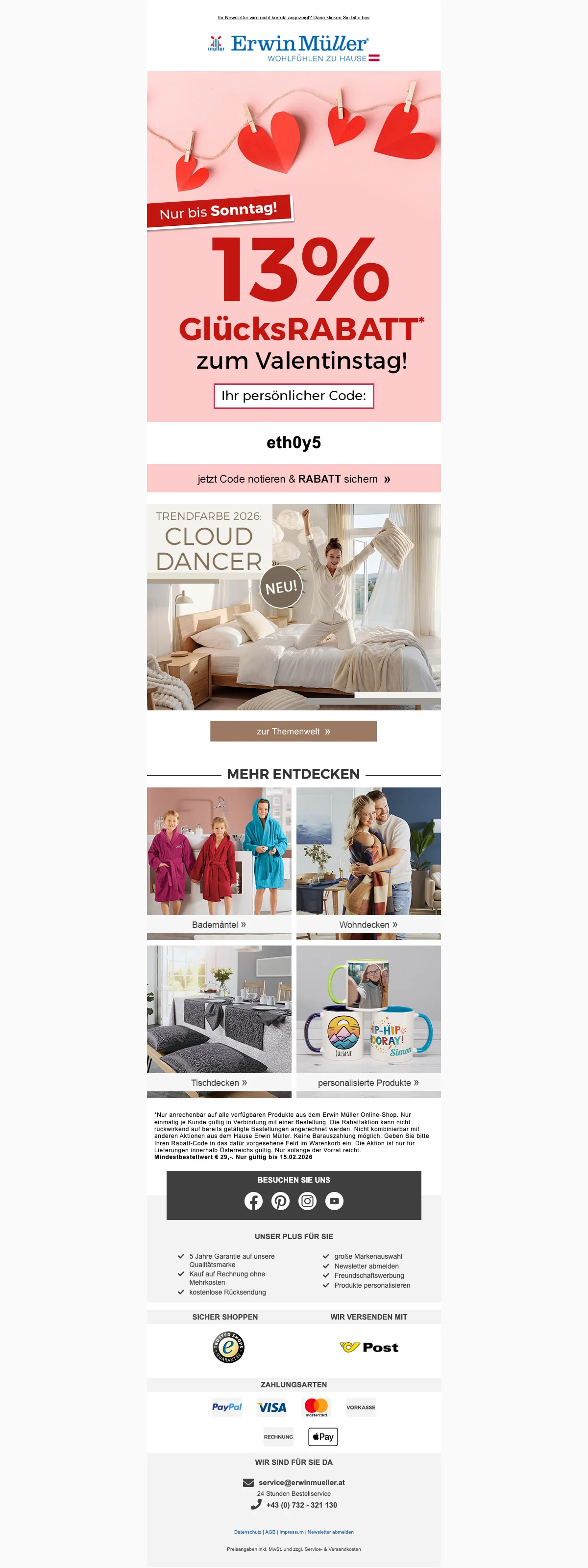 Gültige und aktuelle Erwin Müller Gutscheine Österreich Februar 2026