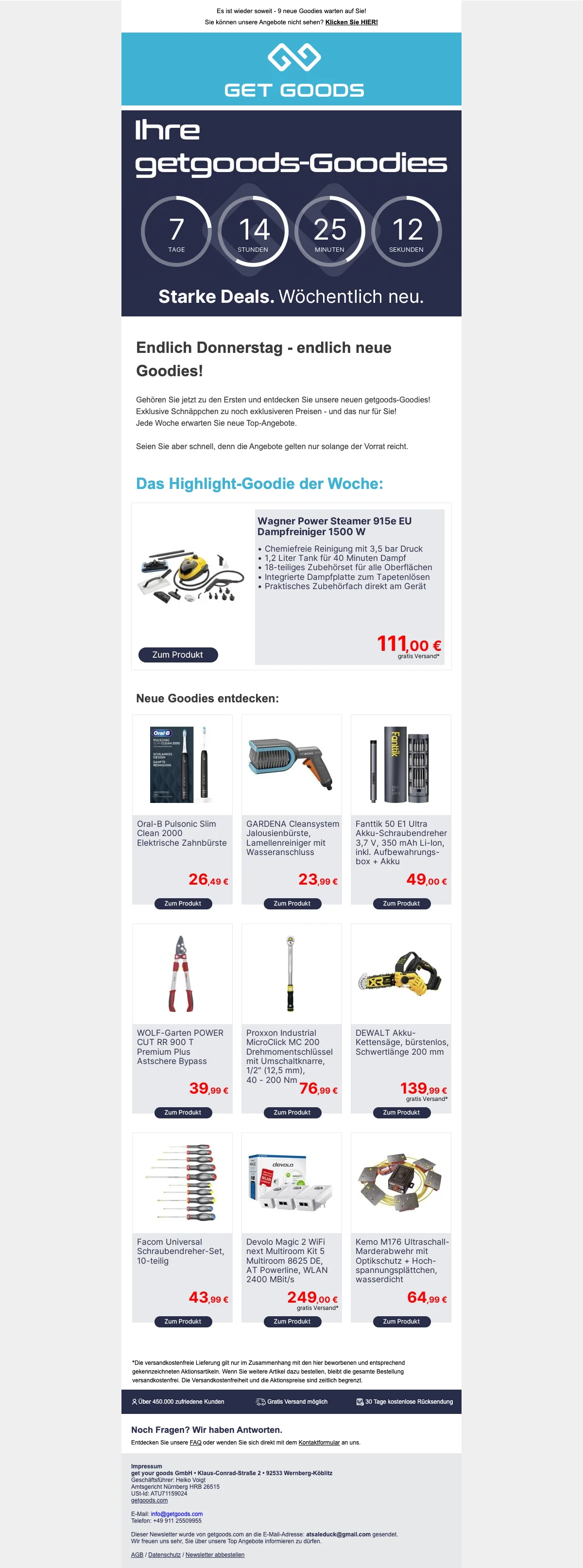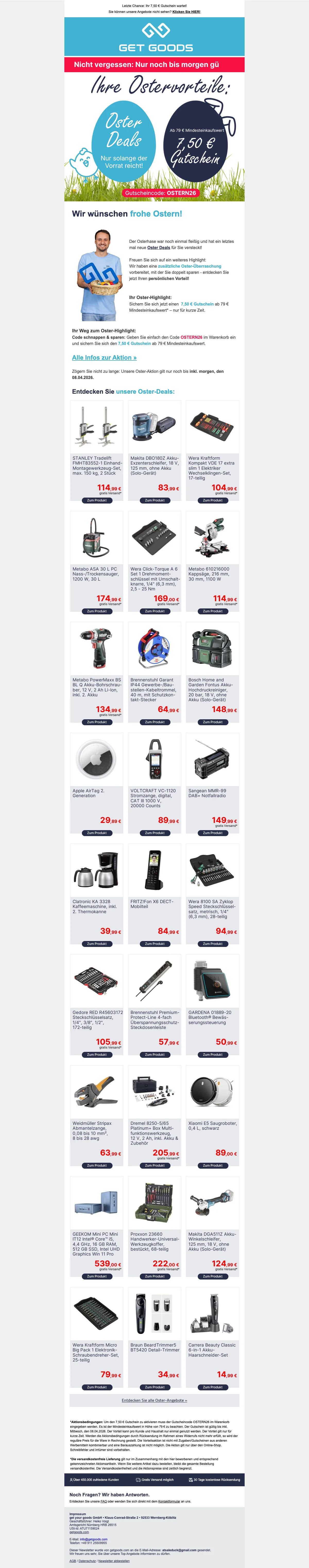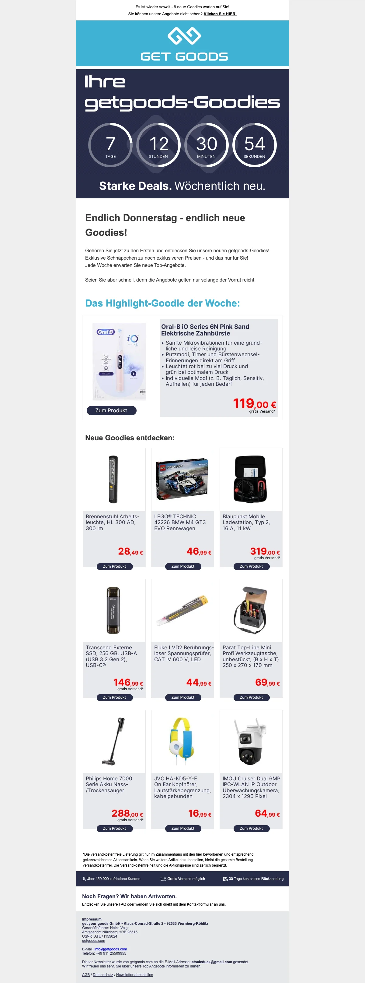 Wow! Schau noch heute im Online Shop von Getgoods vorbei und sicher dir jetzt ganze 5,55 € Rabatt mit dem Getgoods Gutscheincode. Bei Getgoods findest du jede Menge Elektroartikel zu super günstigen Preisen, egal ob Laptop, Smartphone. Ladekabel, Akkus oder Beleuchtung. Schlag jetzt günstig bei getgoods.com zu und spare mit unserem exklusiven Getgoods Gutschein!
