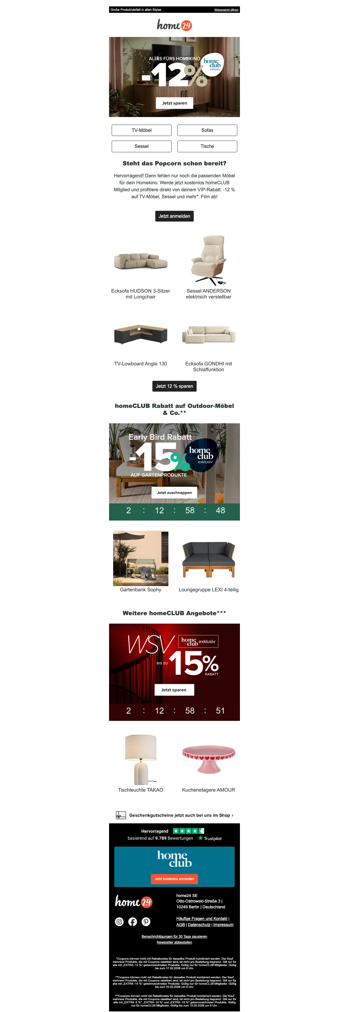 Home24 WSV bis zu 20% Rabatt auf Möbel für homeCLUB-Mitglieder