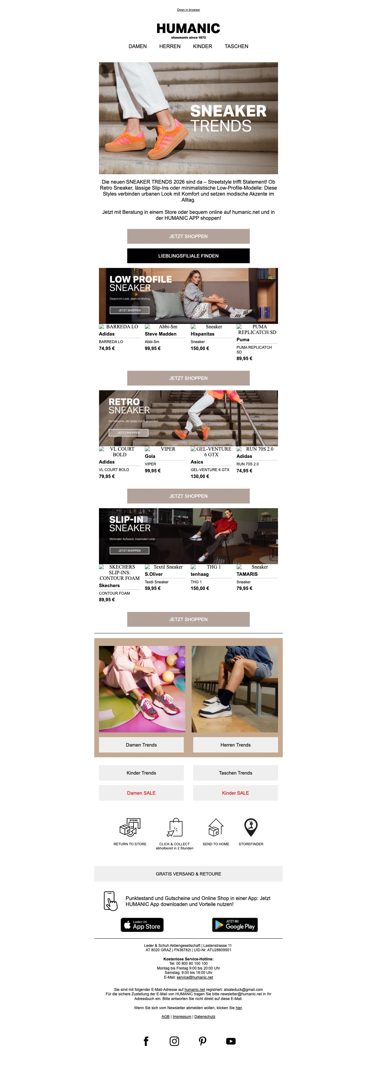Humanic Versand & Rückversand: jetzt gratis
