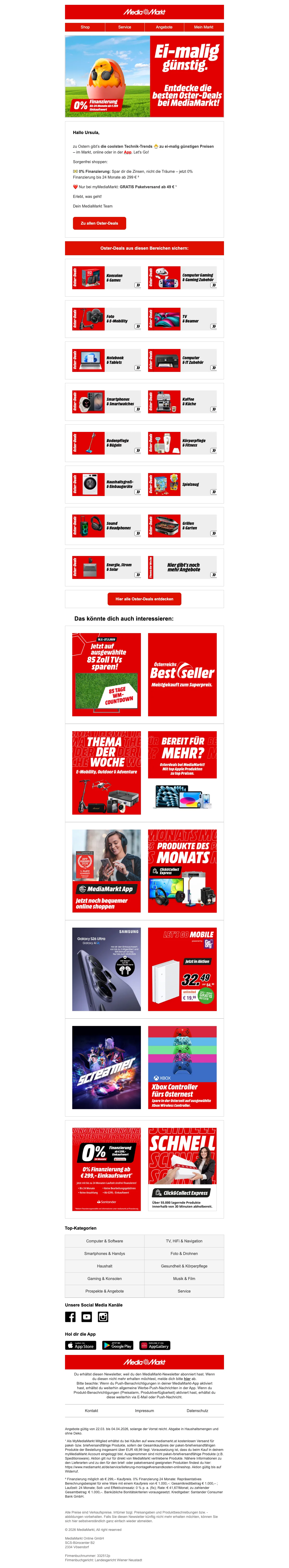 MediaMarkt Aktionscode Österreich: € 10.- bei Newsletteranmeldung sichern