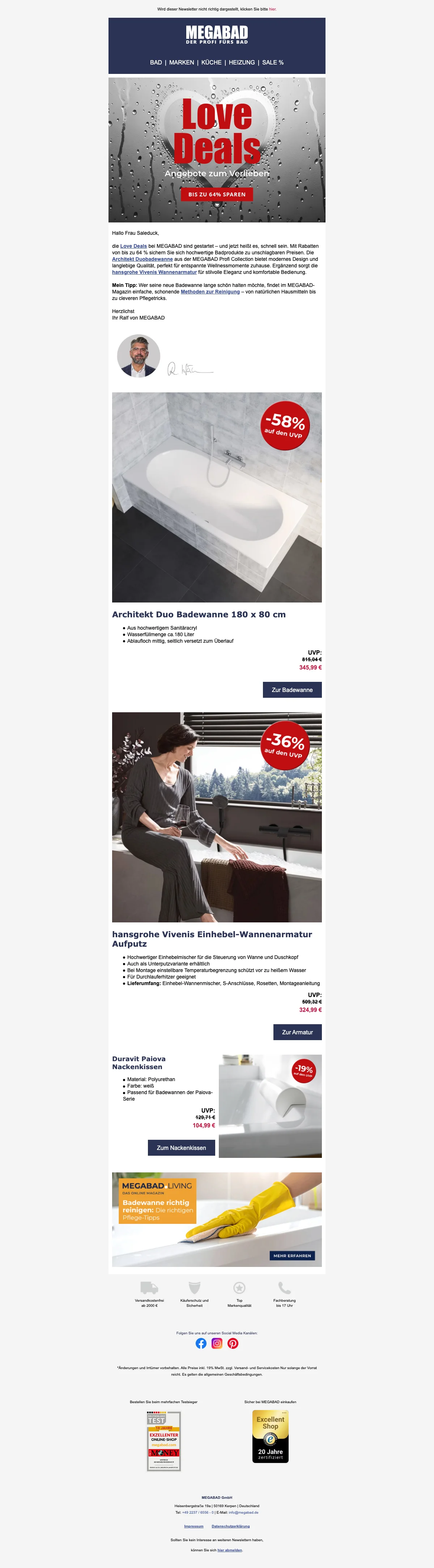 Megabad Kaldewei-Aktion: 10% Rabatt auf das gesamte Sortiment