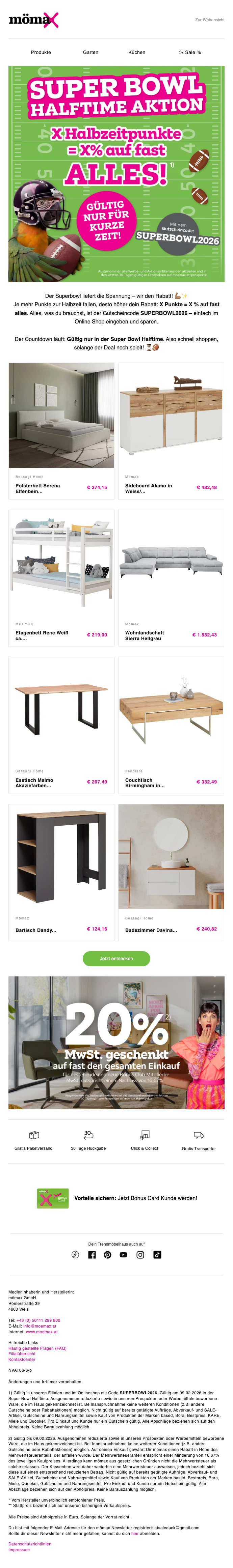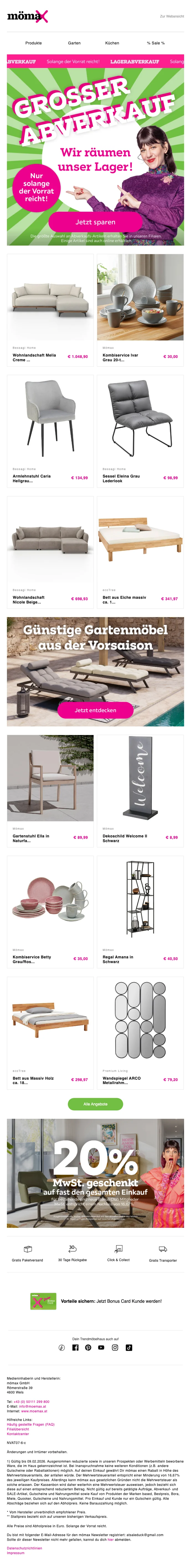 Wow! Besuche jetzt saleduck.at und sicher dir aktuelle Gutscheine & Gutscheincodes. Im Online Shop packst du dein(e) Lieblingsteil(e) ganz bequem in den Warenkorb und klickst dann auf die pinke Schaltfläche "Zur Kasse". Füge dann den Code in das entsprechende Feld ein und komme so in den Genuss eines Extra Rabatts. Nicht wirklich schwer einen Gutschein von saleduck.at zu benutzen, oder?! Schnapp dir jetzt aktuelle Angebote und freue dich auf ein schönes Zuhause mit neuen Möbeln! Hier kannst du das ganze Jahr über Rabattaktionen nutzen und so ganz besonders viel sparen.