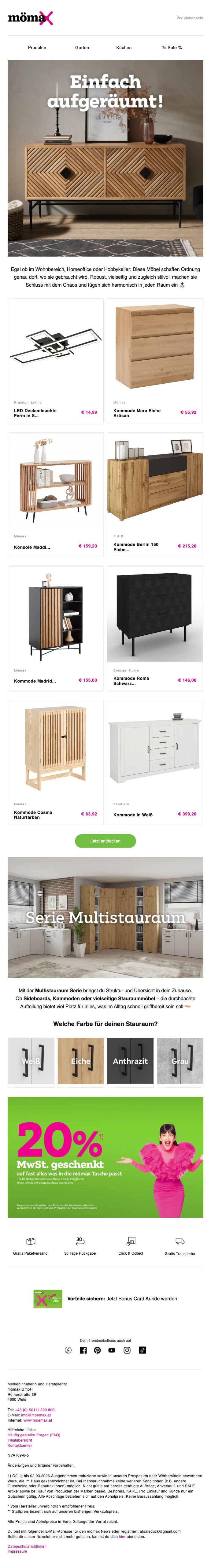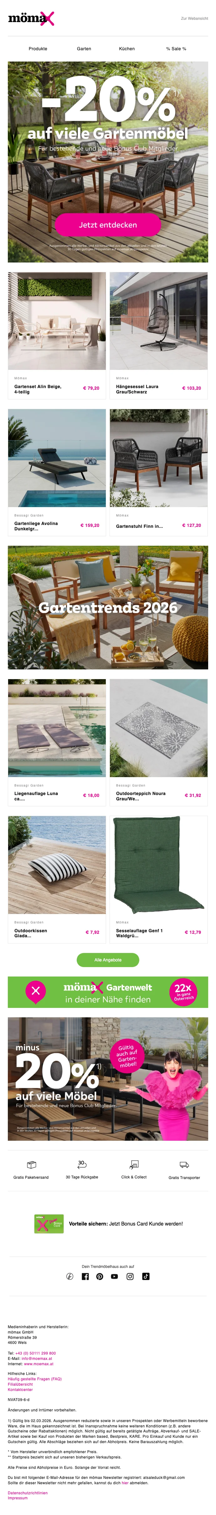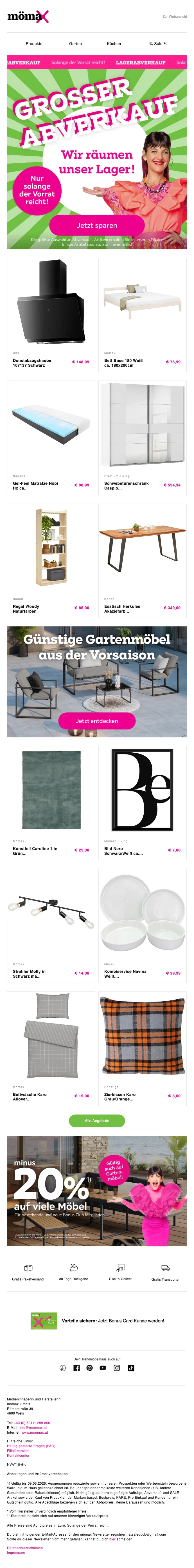 mömax Newsletter Aktion 10 € Gutschein ab 25 € MBW