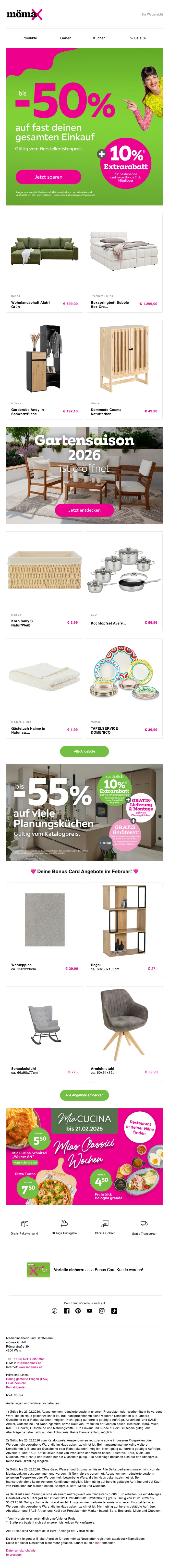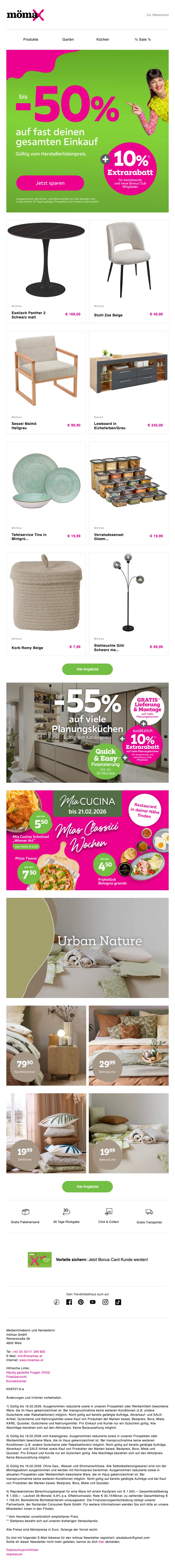 Es war im Oktober 2002, als in Dornbirn/Vorarlberg etwas ganz Tolles ins Leben gerufen wurde: die erste Filiale der Firma. Der Marke mit dem pinken X. Mittlerweile tummeln sich bereits über 51 Filialen dieses trendigen Möbelunternehmens in ganz Österreich und Deutschland. Der Möbelhändler ist wahrscheinlich deswegen so beliebt, weil deren Einrichtungsexperten Bett, Couch, Schrank und Kommode nicht einfach nur so zusammenwürfeln. Der Möbelhändler legt viel Wert darauf den aktuellen Trends zu folgen und bietet attraktive und vor allem stimmige Komplettlösungen für Wohnraum auf 35, 50 und 70m² an. Logisch, dass man in den Filialen und auf der Homepage aber auch nur einzelne Teile erstehen kann. Hier findet man günstige Möbel und Dekoartikel in Hülle und Fülle und kann den Slogan vom Möbelhändler wörtlich nehmen: "Sieht doch gleich besser aus!".