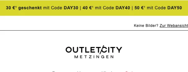 Die Artikel mit den höchsten Preisnachlässen bei Outletletcity Metzingen Online findest du in der Kategorie Sale. Um bis zu 70% sind die Premium-Markenartikel hier reduziert. Bist du bei diesen unwiderstehlichen Preisen auf den Geschmack gekommen und möchtest beim Einkauf von Premium-Mode, Sportbekleidung oder Accessoires noch mehr sparen? Dann sichere dir doch einfach einen Outletcity Metzingen Gutschein. Diesen kannst du bei der nächsten Bestellung einlösen und erhältst noch einmal einen kräftigen Rabatt auf den Bestellwert. Bei saleduck. at erhältst du immer die besten, aktuellen Gutscheincodes für Outletcity Metzingen, damit du noch mehr Geld sparen kannst.