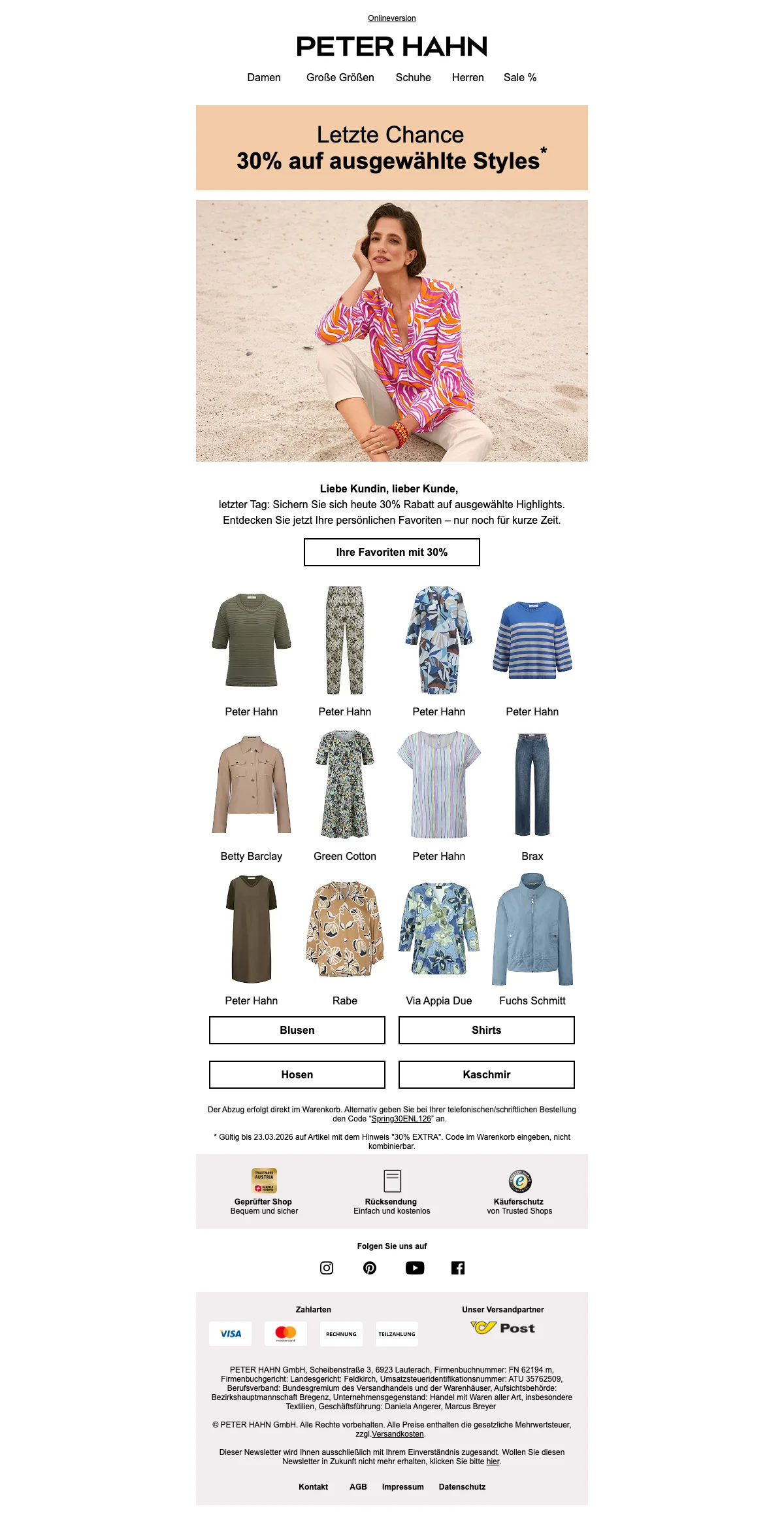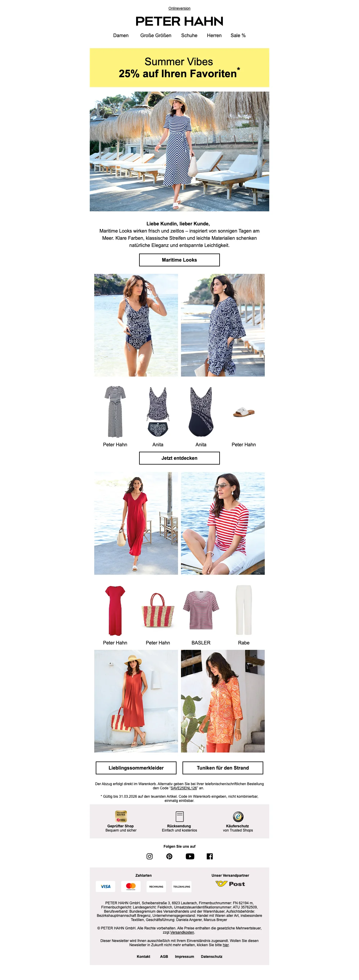 Peter Hahn maritime looks 25% rabatt auf deinen favoriten im sommer