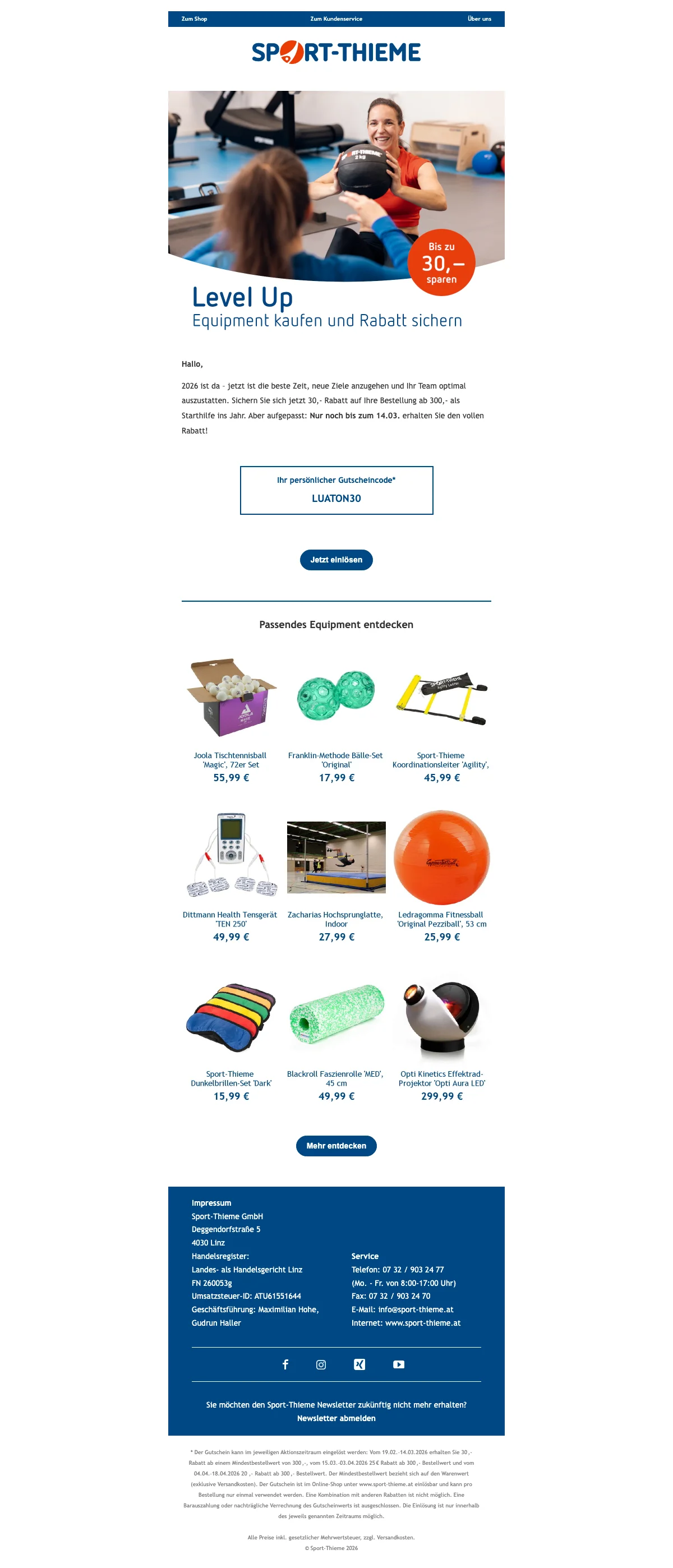 | LUATON30 | Sport-Thieme gutschein 30 € Rabatt ab 300 € – Jahresanfang |