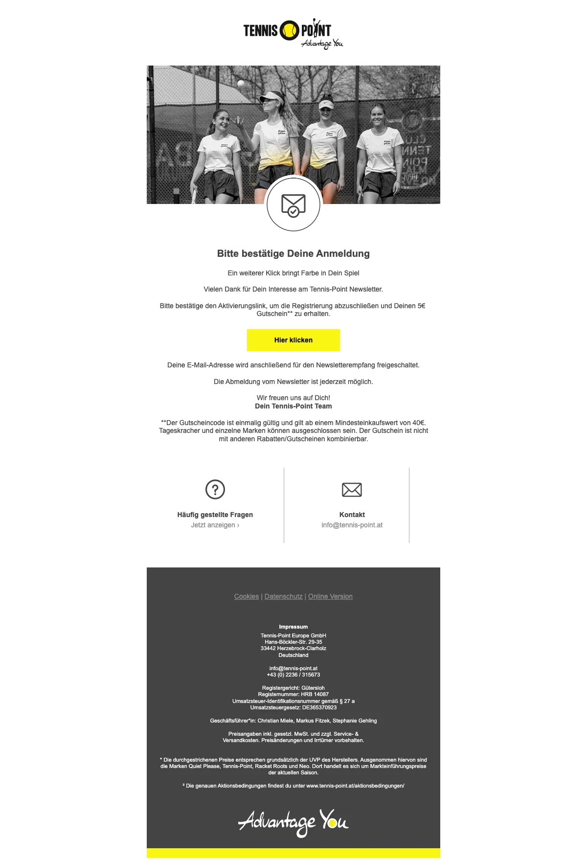 We check all the newsletters from Tennis Point for you to find the best deals. Have a look at their latest newsletters.