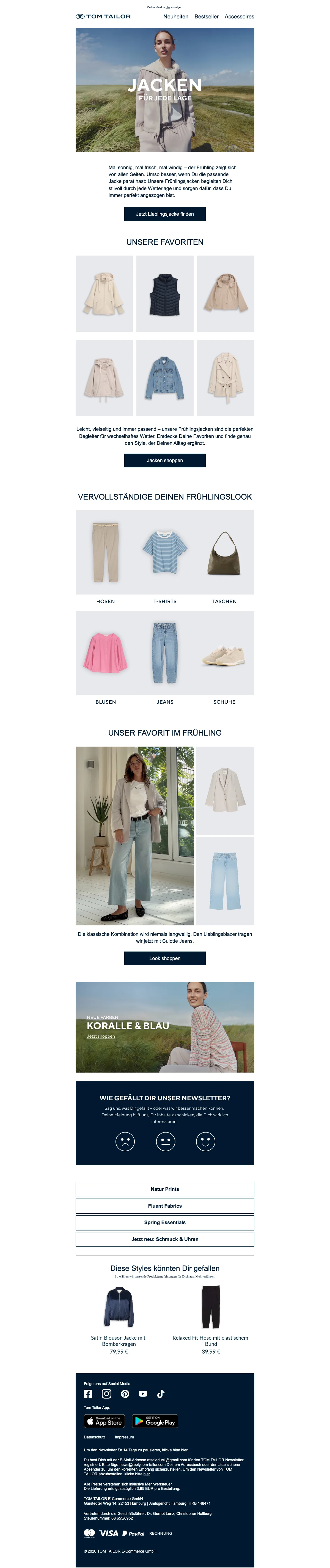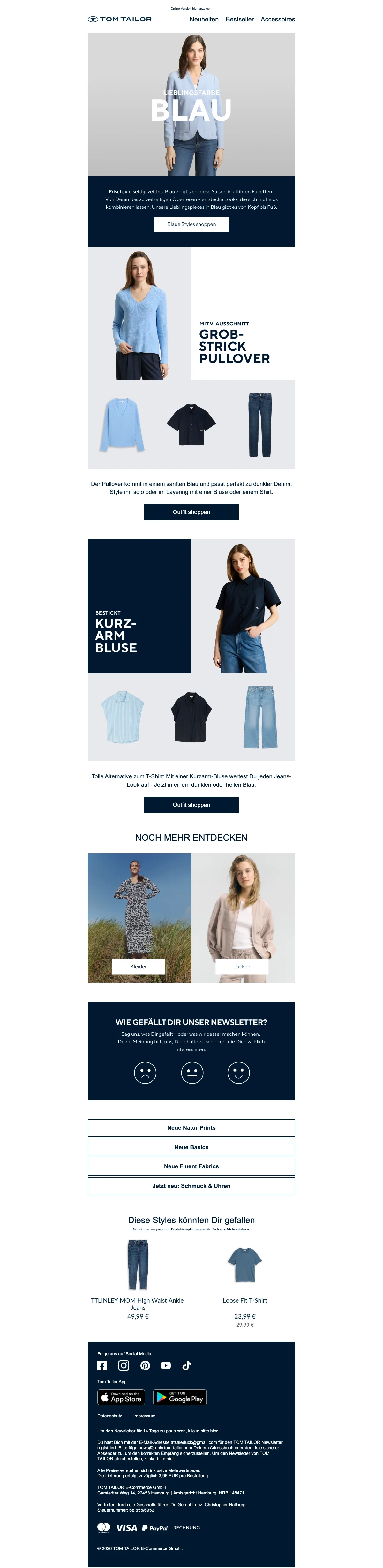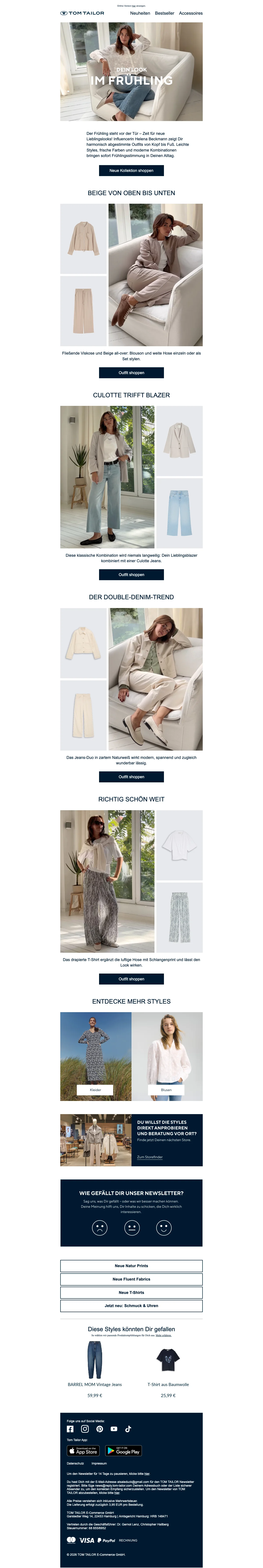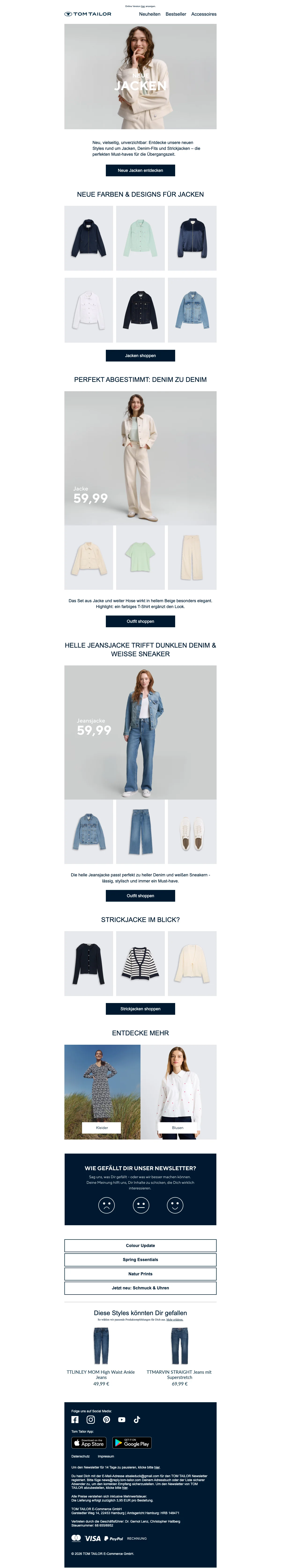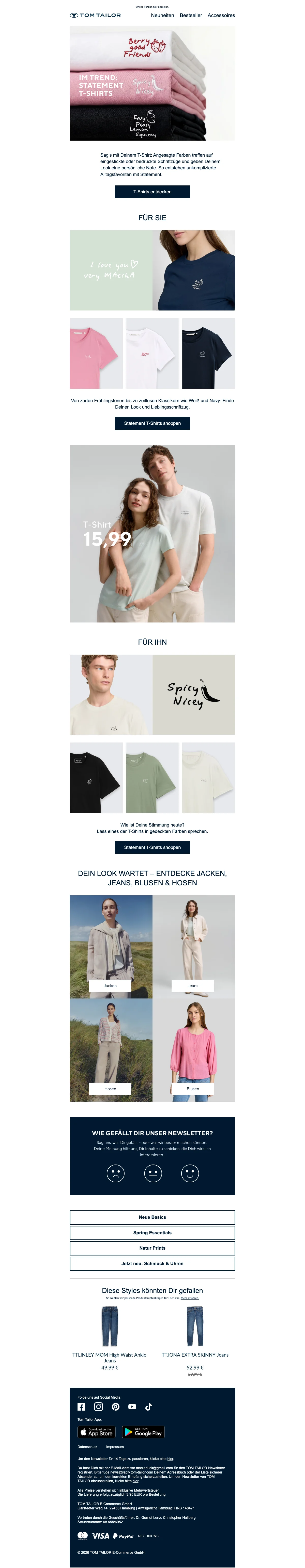 Tom Tailor Gutschein: 15 % Rabatt auf Newsletteranmeldung