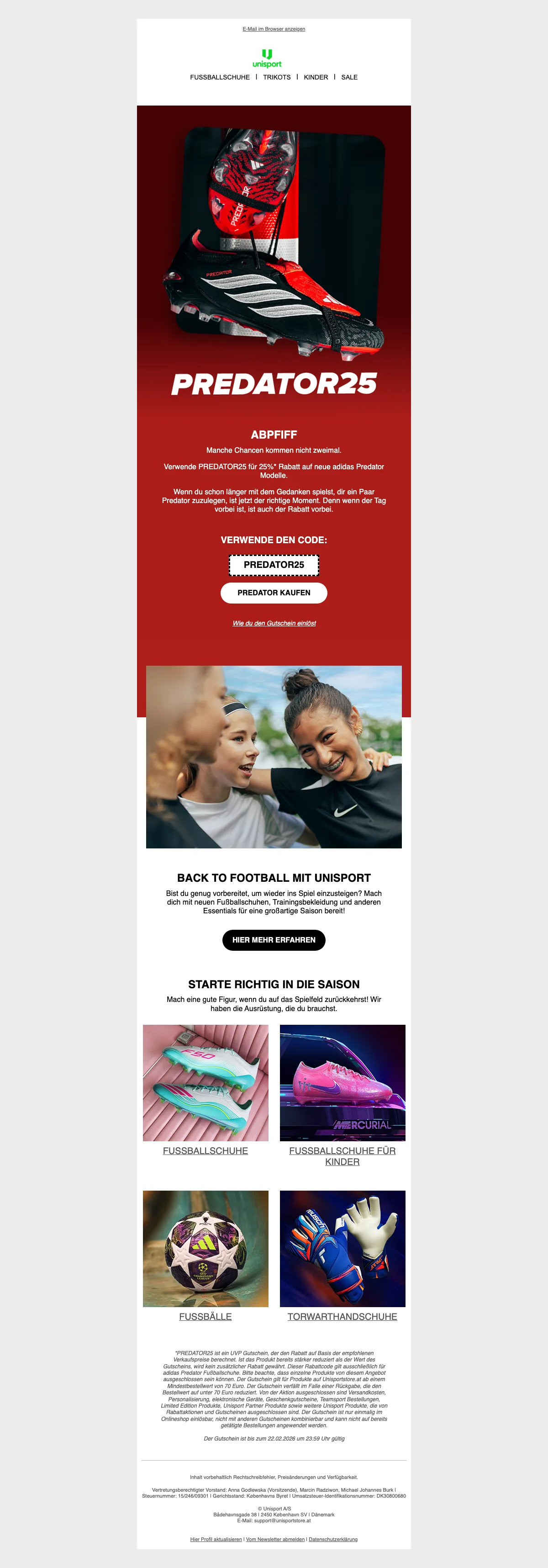 Sale bei UNISPORT! Spare bis zu 50 % auf Kinder-Fußballbekleidung