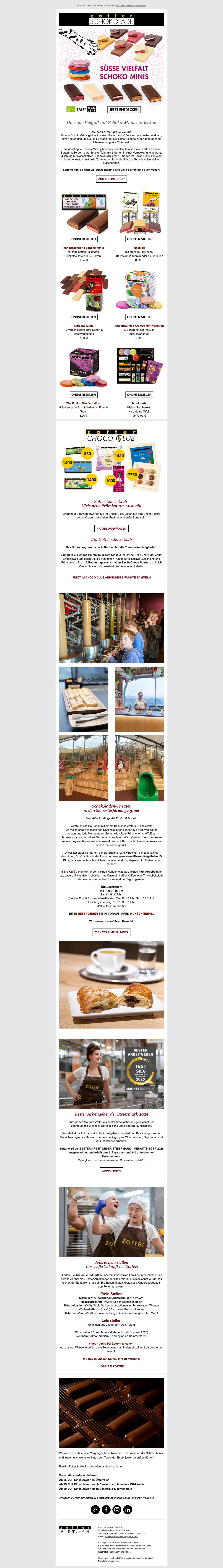 We check all the newsletters from Zotter for you to find the best deals. Have a look at their latest newsletters.